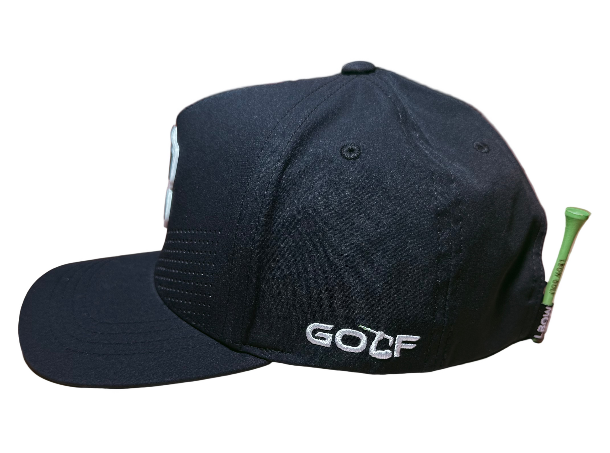 Designed with a Velcro-back closure, with connected stretch band, for easy adjustability, the Signature Hat offers a secure fit that works on and off the course. Its lightweight performance fabric and side perforations keep you cool and comfortable during long rounds, while the structured build ensures a sharp look. And don't forget the branded tee holder on the back!