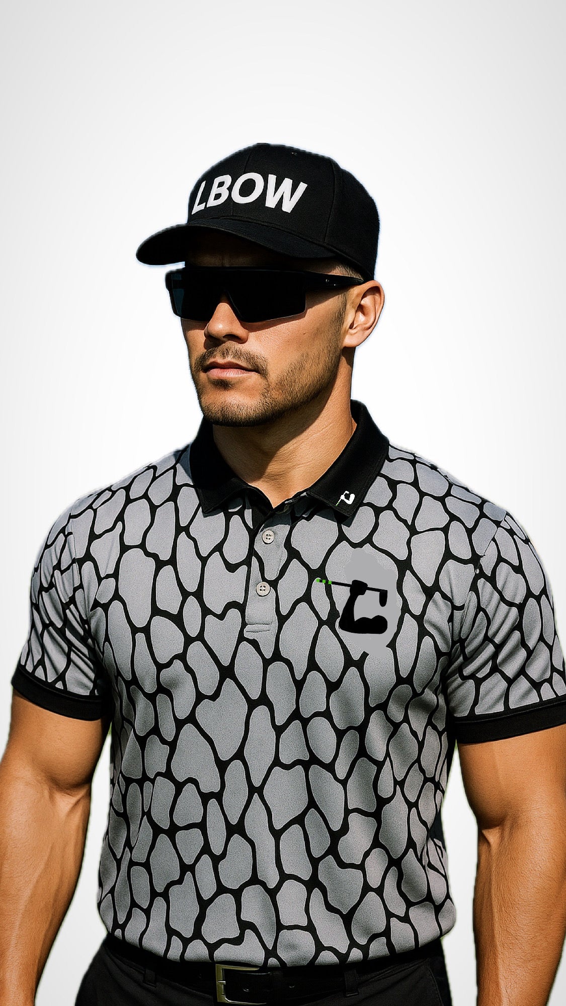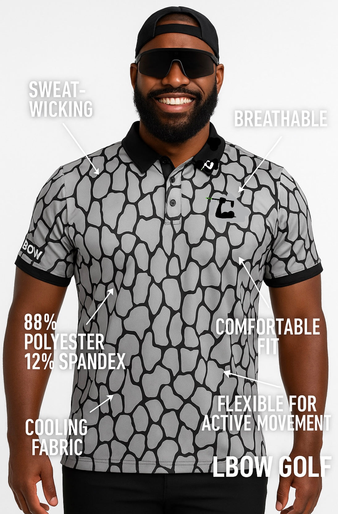 Command attention. With a performance cut made a from premium 88% polyester / 12% spandex blend from Ghana, Africa, consider it like Vibranium in your shirt. Engineered for performance and styled for dominance, the Grey Giraffe Elite polo features a bold giraffe-pattern print on moisture-wicking, breathable fabric. This is what elite looks like.