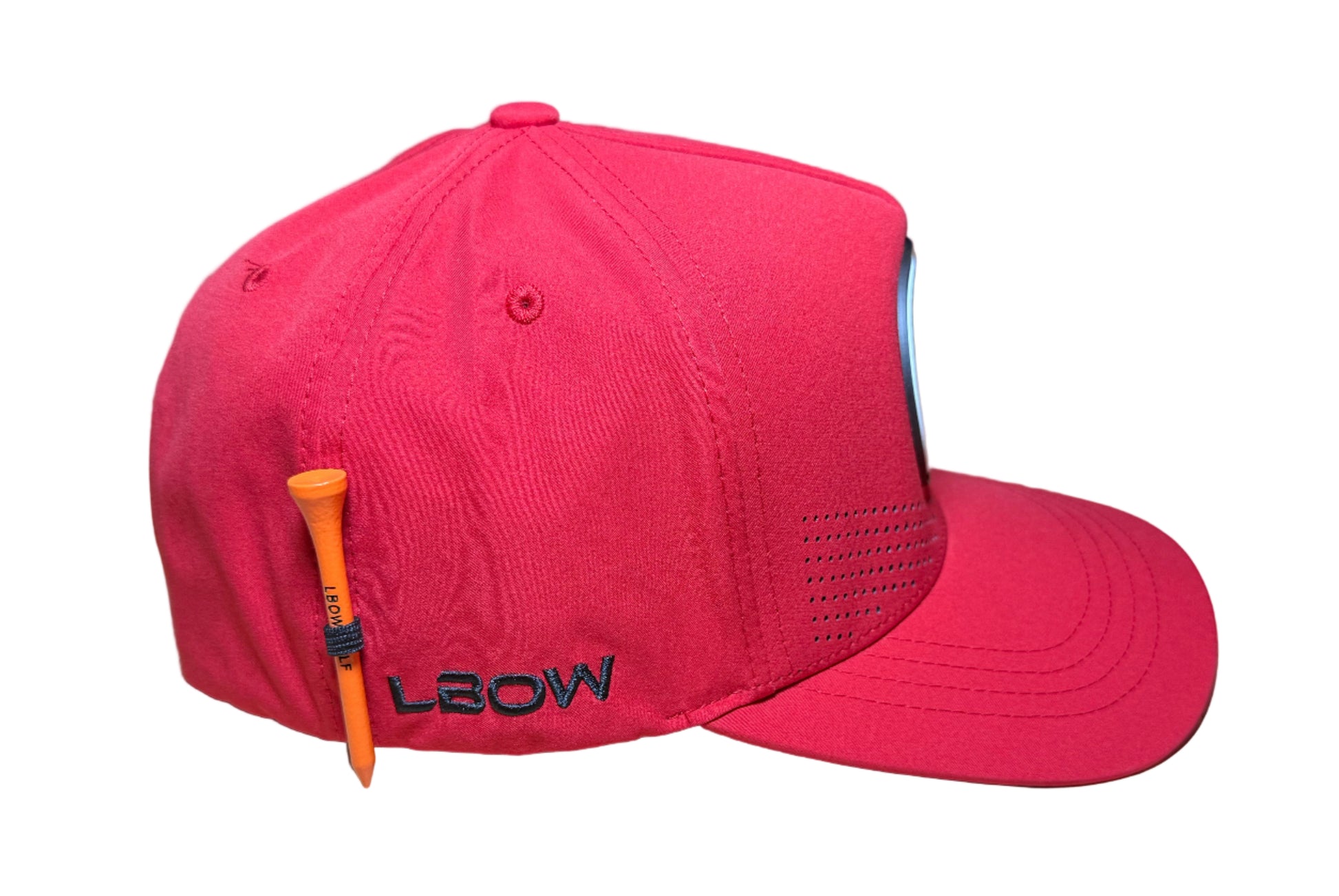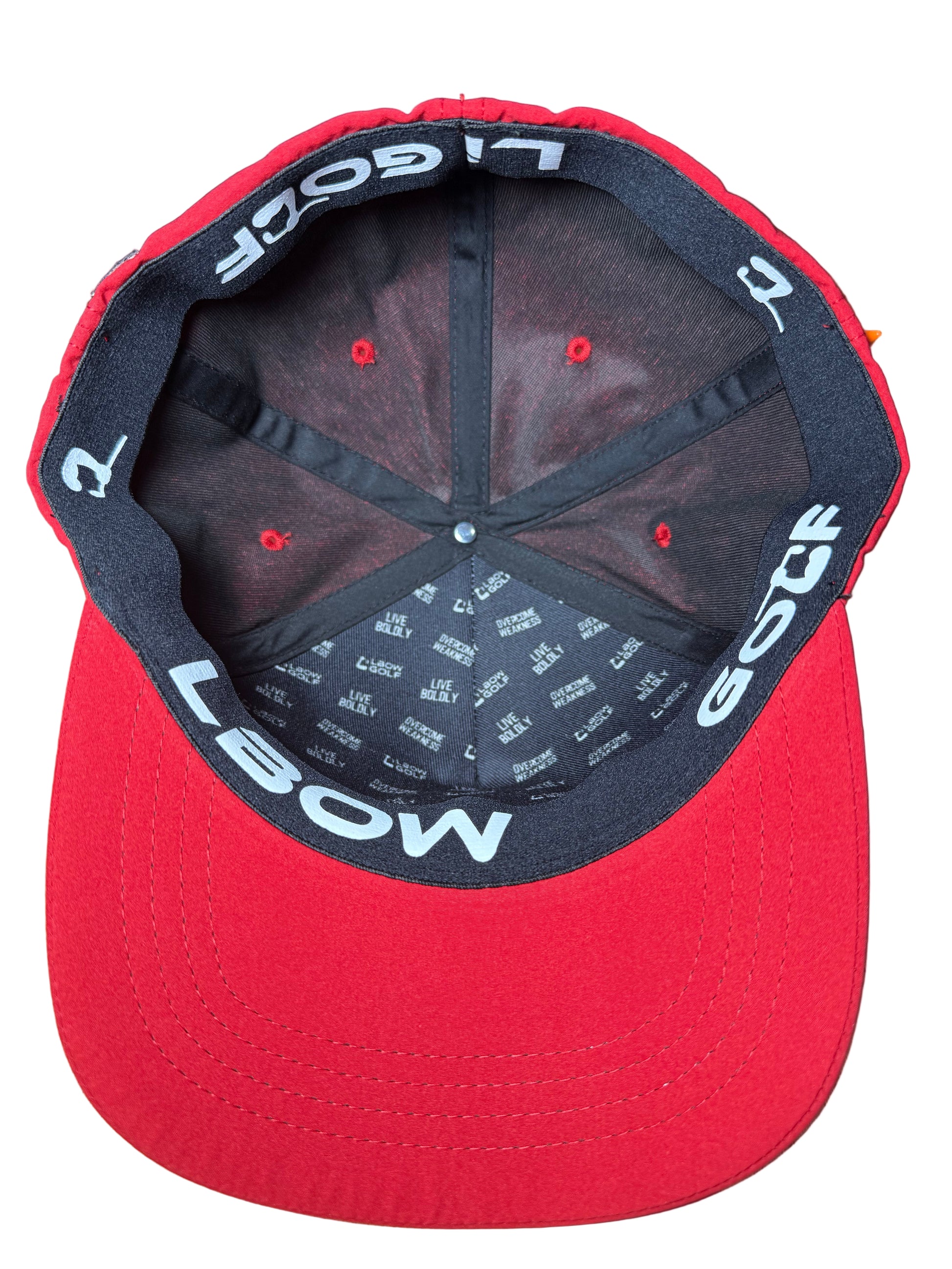 Stand out on and off the course with the Red LBOW Icon Hat, designed for those who live boldly and embrace performance. Featuring our signature 3D silicone circle patch, this hat proudly carries the LBOW mantra: Live Boldly. Overcome Weakness.