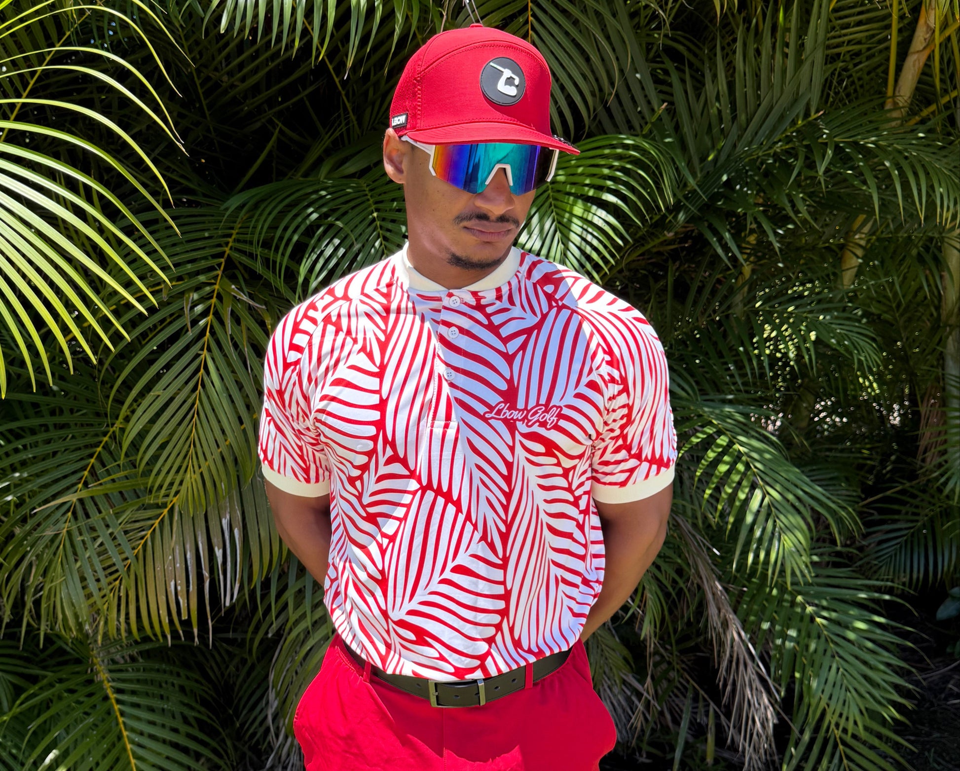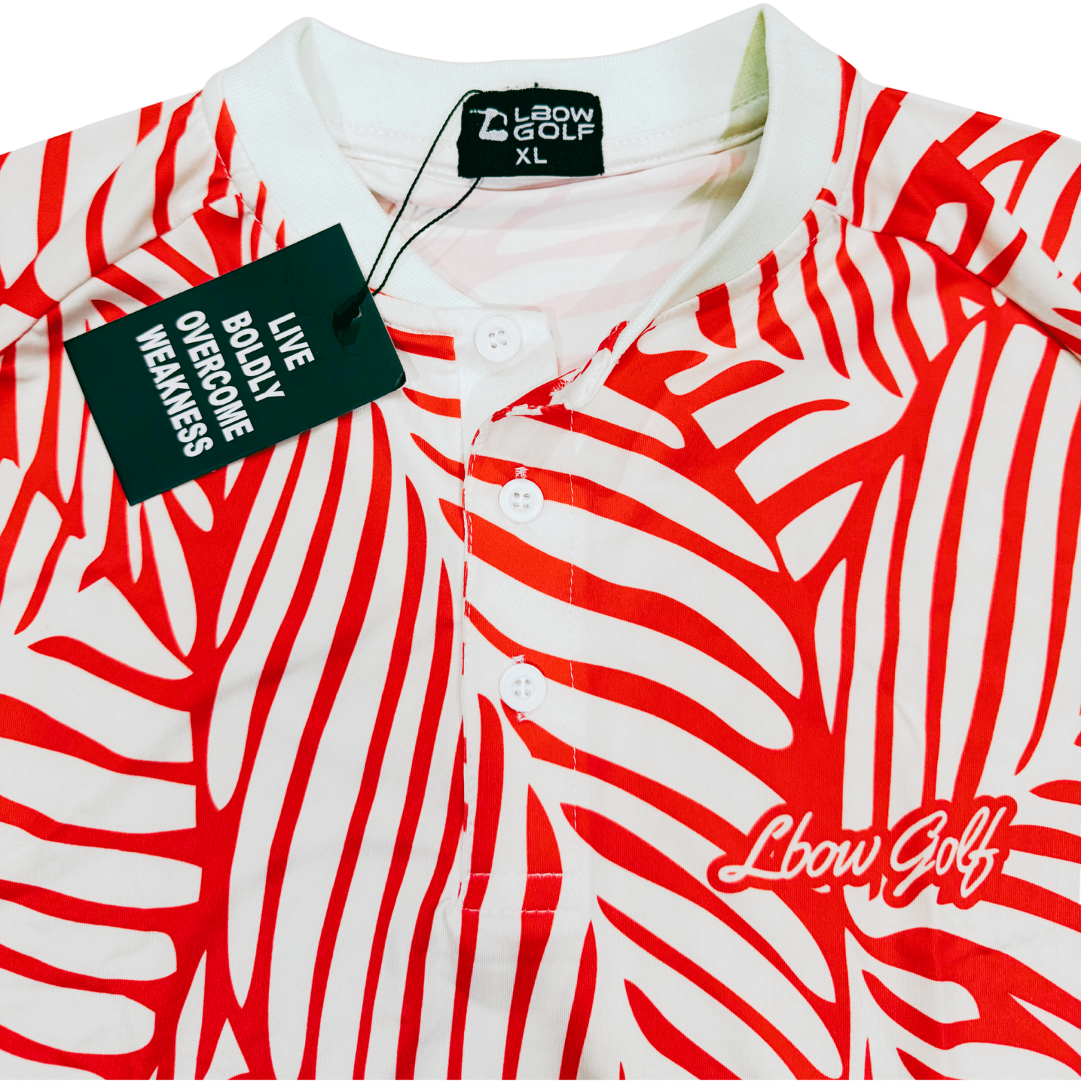 Bring the heat to the fairway with the Red LBOW Tropic Blade Polo. Inspired by the bold shape of banana leaves, this design fuses tropical energy with modern performance.
